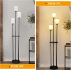 Product Information Main Color: Brown+Black Main Material: Rattan+Metal Product Dimensions Item Length (in.): 16.93 Item Width (in.): 12.99 Item Height (in.): 7.09 Weight (lbs.): 13.00 Package Size Length (in.): 16.93 Width (in.): 12.99 Height (in.): 7.09 Weight (lbs.): 13.20 Product Features ?【3-Light Floor Lamp with Shelves】Combination of three beige fabric lampshades and black elements makes this floor lamp perfect for industrial, farmhouse and modern minimalist home styles. Three light poles form a solid structure between the shelf and the metal base, allowing this standing lamp to be stable enough. The weighted base of the floor lamp for living room is designed to prevent tipping and keep you and your family safe at home. ?【Upgraded Double Shelf Design】This modern floor lamp has a 10.2inch shelf, which is made of high-density fiber material(maximum load 50 pounds) and the upgraded metal base can also be used to store and display objects. You can put plants, photo frames, books or any small things you want on it. Whether you install this industrial floor lamp in your living room, bedroom, nursery, study, office, bedside or corner sofa, it will bring just the right light and a nice home ambience to your space! ?【Convenient PedalSwitch】There is a on/off foot switch on the cable of the black floor lamp, which is very convenient to operate. You can free up your hands to do other things, saving you time to bend over and turn off the lights. The 79inch long cable allows you to move this tall table lamp indoors at will. Whether you use this floor lamp for bedroom as a lighting tool, reading lamp or home decoration, it will be an ideal corner floor lamp choice! ?【Lamp Size & E26 UL Socket】Overall size: 10.2"(L)x10.2"(W)x66.1"(H). Fabric lampshade size: 4.9”(L) x5.7"(H). This floor lamp with table is equipped with 3 E26 UL sockets, compatible with led, cfl, incandescent, tungsten and halogen bulbs (Bulbs Are Not Included, Max 40W). This 67inch floor lamp for bedroom can be easily assembled without any tools, you just need to follow the instructions to screw all the parts together.