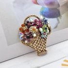 Flower Basket Crystal Rhinestone Vintage Style Brooch Pin and Gold Bag Beautifully Detailed Crystal Rhinestone Flowers with many colors (flower patterns may differ slightly) Brooch is 2 " x 1 3/4 " Free Gold Foil and Cloth Bag Come see all of our other Brooches, Bracelets, Earrings, Necklaces, Pendants, , Rings, and Glow in the Dark jewelry today.