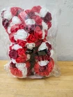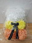 This beautiful teddy bear is the perfect romantic gift for your girlfriend or wife. With its soft and cuddly foam texture, it's sure to bring a smile to anyone's face. The rose foam material gives it a charming and elegant look, making it a great addition to any home or garden decor. Measuring at 9 inches in size, this teddy bear is perfect for all occasions. Its common name of Rose and romantic theme make it a ideal choice for those looking for a thoughtful and unique gift. So why wait? Order now and surprise your loved one with this adorable and lovable teddy bear. Great for use in making Gift Baskets, Valentines, Birthdays, Gender Reveals, Baby Showers, ect. These Beautiful bears make everyone Happy! We ship Monday through Friday excluding Holidays, tracking included. Please allow 5-7 business days to receive, Saturday and Sunday are not business days. **Unfortunately, from time to time a rose or 2 may fall off while in transport, we cannot predict how the package will be handled once given to the carriers. Simply add a dot of hot glue and reattach where it has fallen off at. Please email with any questions or concerns. Thank you!!