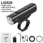 Product Details: Model: LIG520 Material: Aluminum Alloy Mode:5 Modes Waterproof: IPX-5 Lumen: Max 1000Lumen Range: About 200M Battery: About 4800 mAh Charging Time: About 5 hrs Product Features: 1. High beam/low beam. Anti-glare 2. Aluminum alloy , good heat dissipation 3. ON/OFF Different led colors to show the remaining power 4. Durable/Anti-Fall, Long Range 5. Built-in battery.USB Rechargeable 6. Automatic power off after charging finish 7. Not only a bicycle light, it's also a flashlight, and Power Bank. 8. High Brightness, Low energy consumption ****Double tap to switch High/low beam**** Package list 1. Bicycle Lights 2. USB Cable 3. Aluminum alloy bracket 4. Wrench 5. 22.8mm handlebar plastic Pad 6. 31.8mm handlebar plastic Pad 7. OTG output adapter Max 1000 Lumen Bright Press ON/OFF To Switch Low light - Mid Light - High Light Press Twice Quickly Switch To Strobe Mode Anti-glare Lighting Cut-off line design, Will not dazzle the opposite people Power Bank Not only a bicycle light, it's also a flashlight, and Power Bank, LED Power Display Know the remaining power Blue LED: output charging Green LED: 20~100% Power/full charge Red LED: ≤20% Power/input charging Built-in 4800 mAh battery IPX5 Waterproof Please note: it is not 100% waterproof. Please do not use for a long time in rainy day or put into the water