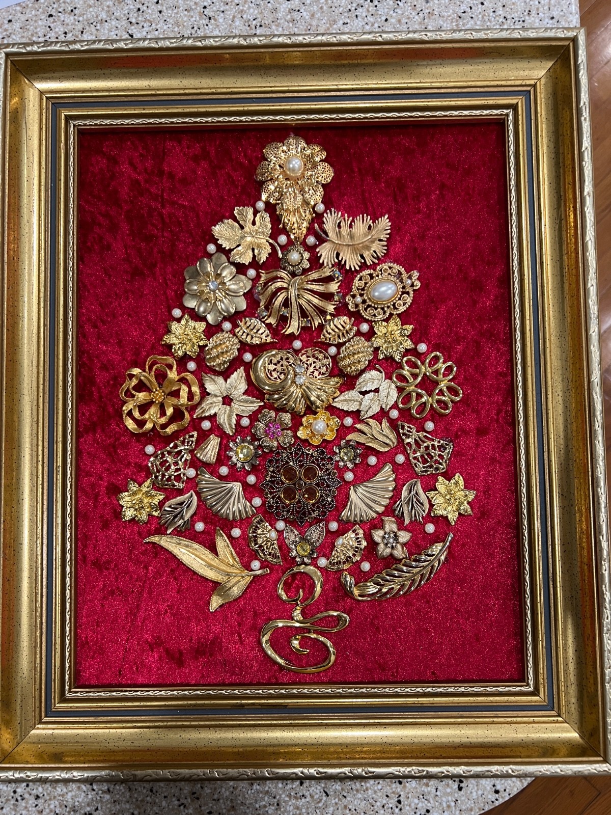 Framed Christmas Tree made with Vintage Costume Jewelry