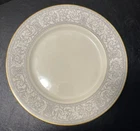 Add a touch of classic elegance to your dining table with this set of four Franciscan Masterpiece China Platinum Renaissance dinner plates. These dinner plates feature a beautiful gray floral scroll band and ivory color in a stunning Renaissance pattern that is perfect for any occasion. Crafted in California, these dinner plates are a vintage addition to your collection. The set includes 4 dinner plates, 10 5/8” across.