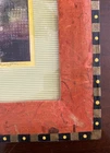 Overall size is 14.5x17.5” including the frame. The innermost mat is bright yellow and the outer ribbed mat is pale green. The orange frame has been created incorporating a papier-mâché type of technique. Signed by Kathy W. Spears. I acquired this in 2002 (I think).