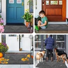 【Moisture & Dirt Absorbent】: The surface of the door mat is made of woven polyester fabric. The deep grooves can effectively trap the dust, gravel, mud, sand and other clutter. The sturdy beveled rubber edge will not accumulate water. Even rainy, snowy or muddy weather will keep your home dry and clean. 【Sturdy & Non-Faded】: Good quality natural rubber makes the door mat long-lasting. Not easy to tear and excellent tensile strength to withstand all weather and seasonal changes. Odorless and fastness to fading makes the process of reuse more pleasant. 【Non-Slip & Low-Profile】: The sturdy non-slip rubber liner has a strong grip, that not only keeps water and mud from seeping into the floor and damaging the floor, but also keeps the door mat from sliding in use. The low profile makes our doormats suitable for most entrances. The door can be opened and closed smoothly without the risk of tripping. 【Easy to Clean】: front door mat can be swept with a broom, lifted by hand, or vacuumed. For a deeper cleaning, use a washing machine or hose to rinse, then hang it in a ventilated place to air-dry or tumble-dry. Do not use bleach or fabric softeners. 【Wide Use】: The classic design doormat is versatile and suitable for both indoor and outdoor use. They are a good choice to keep your home clean by placing them in the doorway, terrace, ground, etc. They are the perfect choice for decorations and thoughtful gestures for families and friends.