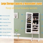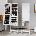 Product Description 【Full Length Mirror】 This mirror armoire is made of high-quality glass material, its size is 47.24"H x 14.57"W. We are committed to providing you with a clearer and complete view. 【Lockable Design】 Jewelry cabinet organizer is equipped with safety lock that can effectively prevents your jewelry and cosmetics from being messed with by children and naughty pets. 【Multi Angle Adjustable】 There are 3 holes on each side of jewelry cabinet to adapt to different tilt angles. You can adjust the angle of the mirror to 5°, 10°, 15° according to your different needs. 【Large Storage Capacity】 Our jewelry armoire is a good storage helper for you. It contains 108 earring slots, 36 earring holes, 2 hanging rods, 24 necklace hooks, 91 ring slots, 3 makeup tool boxes, 4 storage shelves and 2 wooden drawers 【 Special Gift】 Our jewelry cabinet is made of natural wood and equipped with high-quality velvet, which can better protect jewelry. This is the dream of every girl's favorite gift. If you have any problems, you can contact us. We will be happy to help you. Specifications Material:Wood, Glass, Velvet Style:Freestanding Special Feature:Adjustable,Jewelry Organizer,Sturdy Product Dimensions:36. 5D x 41.5W x 156H centimetres Occasion:Wedding, Christmas, Birthday Products Include 1x Jewelry Full-Length Mirror