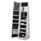 Jewelry Cabinet with Full Length Mirror 360° Swivel, Large Jewelry Organizer Armoire Lockable Free Standing Mirror with Jewelry Storage, Inside Makeup Mirror, Foldable Makeup Shelf,14.2 inches (length) x 3.9 inches (width) x 43.4 inches (height). Features: · Luxurious interior: Stylish velvet interior protects jewelry from scratches, locks and keys ensure safety. · Ample storage: includes 22 necklace hooks, 2 cubes, 4 lined shelves and a bracelet rod, and plenty of room for rings and earrings.it can hold on the door or wall. · Secure key lock: cabinet side with a key lock, not only to protect privacy, but also to protect security. · Space-saving design: fit almost anywhere, including in a closet or as a decorative display, to complement any decorative style; Overall size: 14.2 inches (length) x 3.9 inches (width) x 43.4 inches (height). Selling point: 1.Fashion and simple style 2.Generous design 3.Easy assembly 4. Multi-function 5. Special protection was made inside the package Dimensions & Weight: Product Dimension 14.2(L)* 3.86(W)* 43.4(H) in (36.1*9.8*110.2 cm) Detail Dimension 14.2 inches (L ) x 3.9 inches (W ) x 43.4 inches (H ). Package Dimension 47.24(L)*6.3 (W)* 16.93 (H)in N.W 20.02lb G.W 24.2lb Specifications: Product Name Jewelry Storage Mirror Cabinet Can Be Hung On The Door Or Wall Material MDF、glass、velvet Finish Coated with PVC Color White Package Number 1 Country of Origin China Package Contents: 1 x Jewelry Cabinet 1 x Pack of Accessories 1 x Instruction