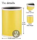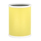 With a large 13-quart capacity, the Fun Colors Waste Basket in Lemon can accommodate any need and room. The internal metal construction of this waste basket is perfectly adorned with lovely leatherette covering. Attractive, easy to clean, and functional definitely describe this item. The Fun Colors Collection also includes an ice bucket and round waste basket in black, blue, green, orange, red, and white. This yellow waste basket measures 13.75" H x 7.75" L x 10" W and is sold individually. With a large 13-quart capacity, the Fun Colors Waste Basket in Lemon can accommodate any need and room.