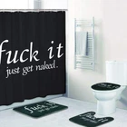 DESIGNER SAY: Our 4 piece shower curtain sets enough to keep your bathroom cleaning, funny words pattern let you add pleasure in the bath. WHY CHOOSE US: Pattern design: Black with funny words pattern, It can bring mystery and infinite fun to your bathroom. Waterproof material: Polyester, has a good waterproof effect, super soft and skin-friendly, easy to hang, do not fade. Non-Slip bathroom mat: Bathroom mat is made of high quality flannel, used in the bathroom, it can be very effective and non-slip, helping you to enjoy a pleasant bath time. Advanced technology: Adopt HD digital printing, clear vibrant design will bright up your bathroom! Easy to use: We give 12 hooks for free to our customer, ensure everyone can easy to install this shower curtain. WARM GUIDANCE: Introduction to care: Machine washable, wash in cold water, wash separately and hang dry recommended, do not use chlorine bleach, you had better iron it in low temperature. Warm Tips: Our rugs are folded, packed and shipped, may produce creases during transportation, but it will not affect normal use. After placing the heavy object on the rugs for a few days, the crease will disappear. Or you can soak it in cold water and dry before use, which can shorten the time for the crease to disappear. Size Information: The shower curtain size: 70" L × 69" W, the bathroom rug size: 23.6" L × 15.8" W, the toilet lid cover size: 16.5" L × 14.6" W, the U shape rug size: 17.7" L × 15.8" W. This bathroom set size is suitable for most bathroom. PACKAGED: 1×funny word shower curtain, 12×strong plastic hooks 1×bathroom mat, 1×toilet lid cover, 1×U shape rug ELEGANT DESIGN: Designed with funny quotes, advanced HD pattern printing technology, the black with words shower curtain image clearly, make your bathroom more fresh and have a new look. PREMIUM MATERIAL: Black and white shower curtain is made of polyester fabric, has a good waterproof effect, the bathroom mat is made of flannel, which is comfy, non-toxic and do not fade, skin soft - esp waterproof and durable. SIZES INFORMATION: The funny words shower curtain size: 70" L × 69" W, the bathroom rug size: 23.6" L × 15.8" W, the toilet lid cover size: 16.5" L × 14.6" W, the U shape rug size: 17.7" L × 15.8" W. This bathroom sets size is suitable for most bathrooms. EASY TO INSTALL: We gift 12 hooks free for you. You don't have to worry about how to install it. You can use this words shower curtain sets to decorate your bathroom, wall, window and any space where you like. EASY USE & CARE: You can dry clean or gentle hand wash in cold water. You can also easily iron it on low temperature.