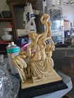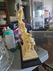 This is a vintage Italian sculpture by G. Ruggeri depicting Hercules on a marble base. The statue stands 11 inches tall and is carved from resin, showcasing a classical style with intricate details. It is signed by the artist and features a small size, making it a unique piece of art with a theme of Greek mythology. The craftsmanship and production technique reflect the artistry and skill of Italian sculpture.
