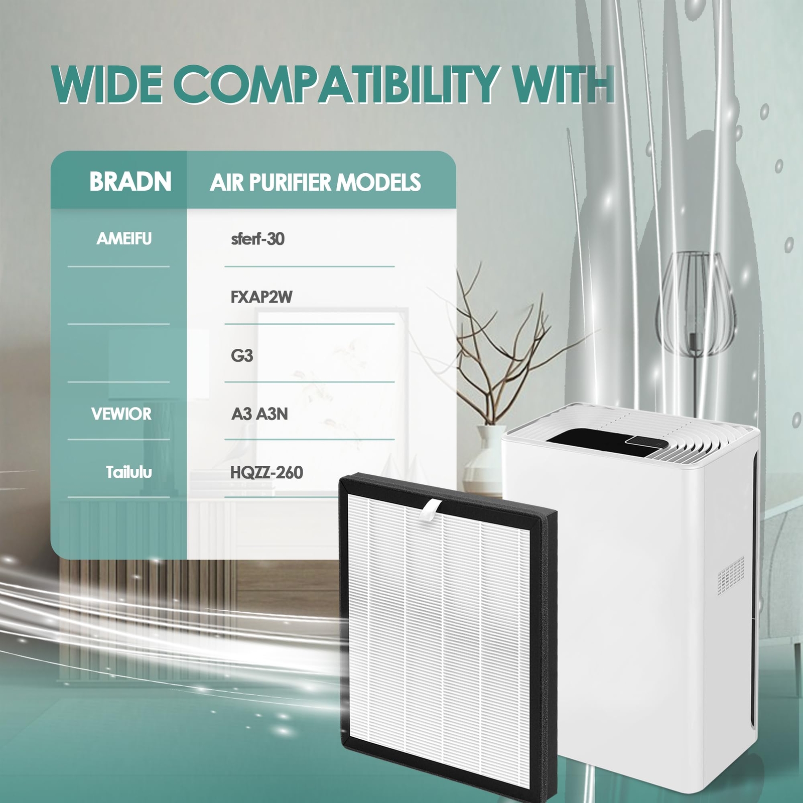 G3 H13 HEPA filter replacement is compatible with AMEIFU air purifier replacement filter for AMEIFU air purifier G3 sferf-30 FXAP2W and Vewior air purifier filter replacement A3 for Vewior air purifier A3 A3N and Tailulu air purifier filter replacement for Tailulu air purifier HQZZ-260 G3 H13 HEPA filter replacement is compatible with AMEIFU air purifier replacement filter for AMEIFU air purifier G3 sferf-30 FXAP2W and Vewior air purifier filter replacement A3 for Vewior air purifier A3 A3N and Tailulu air purifier filter replacement for Tailulu air purifier HQZZ-260 G3 H13 HEPA filter replacement is compatible with AMEIFU air purifier replacement filter for AMEIFU air purifier G3 sferf-30 FXAP2W and Vewior air purifier filter replacement A3 for Vewior air purifier A3 A3N and Tailulu air purifier filter replacement for Tailulu air purifier HQZZ-260 G3 H13 HEPA filter replacement is compatible with AMEIFU air purifier replacement filter for AMEIFU air purifier G3 sferf-30 FXAP2W and Vewior air purifier filter replacement A3 for Vewior air purifier A3 A3N and Tailulu air purifier filter replacement for Tailulu air purifier HQZZ-260 G3 H13 HEPA filter replacement is compatible with AMEIFU air purifier replacement filter for AMEIFU air purifier G3 sferf-30 FXAP2W and Vewior air purifier filter replacement A3 for Vewior air purifier A3 A3N and Tailulu air purifier filter replacement for Tailulu air purifier HQZZ-260 G3 H13 HEPA filter replacement is compatible with AMEIFU air purifier replacement filter for AMEIFU air purifier G3 sferf-30 FXAP2W and Vewior air purifier filter replacement A3 for Vewior air purifier A3 A3N and Tailulu air purifier filter replacement for Tailulu air purifier HQZZ-260 G3 H13 HEPA filter replacement is compatible with AMEIFU air purifier replacement filter for AMEIFU air purifier G3 sferf-30 FXAP2W and Vewior air purifier filter replacement A3 for Vewior air purifier A3 A3N and Tailulu air purifier filter replacement for Tailulu air purifier HQZZ-260 [ π£ππ₯ππππ§ πππ§ ] β G3 H13 HEPA filter replacement is compatible with AMEIFU air purifier replacement filter for AMEIFU air purifier G3 sferf-30 FXAP2W and Vewior air purifier filter replacement A3 for Vewior air purifier A3 A3N, Tailulu air purifier filter replacement for Tailulu air purifier HQZZ-260, search for AMEIFU air purifier replacement filter or Vewior air purifier filter replacement to ensure what you buy is worthy of your investment. compare to part number CSE-6 and ClearAir-A3 [ ππππ-ππππππππ‘ππ¬ π ππ§ππ₯ππππ¦ ] β G3 and A3 H13 HEPA replacement filter is high-efficiency air filter for G3, sferf-30, FXAP2W, A3, A3N and HQZZ-260 air purifiers can remove most of the particles and householdOdors in the air, particularly useful for fine particulate matter. Ideal for families with pets, cooking and smoking. Say goodbye to dust and hello to clean air [ π°-π¦π§πππ ππππ§π₯ππ§ππ’π‘ π¦π¬π¦π§ππ ] β G3 H13 HEPA filter replacement includes H13 true HEPA filter, activatedCarbon filter, pre-filter and protective air filter. Efficient filter of the 4-in-1 filter removes fineDust, tinyPollen, and more airborne particles [ π₯πππ¨πππ₯ π₯ππ£πππππ ππ‘π§ ] β With the frequency of use and the passage of time, the cleaning performance of the AMEIFU and Vewior air purifier replacement filters will gradually decline, and even cause secondary air pollution. Therefore, we recommend replacing the high-efficient filter every 3-8 months [ ππ₯πππ§ π©πππ¨π ππ’π₯ π π’π‘ππ¬ ] β G3 H13 HEPA filter replacement Kit for AMEIFU and Vewior air purifier includes 4 H13 true HEPA filter with activatedCarbon layer. These filters replacement will provide great value for every penny you spend, we use higher quality materials, the product is more durable and more affordable, giving you great value for money shopping experience [ ππ¬π¬% π¦ππ§ππ¦ππππ§ππ’π‘ ] β If you are not sure whether our G3 and A3 replacement filter is suitable for your air purifier or don't know how to replace it, please feel free to contact us, we are committed to providing the highest quality products and promise 100% excellent service