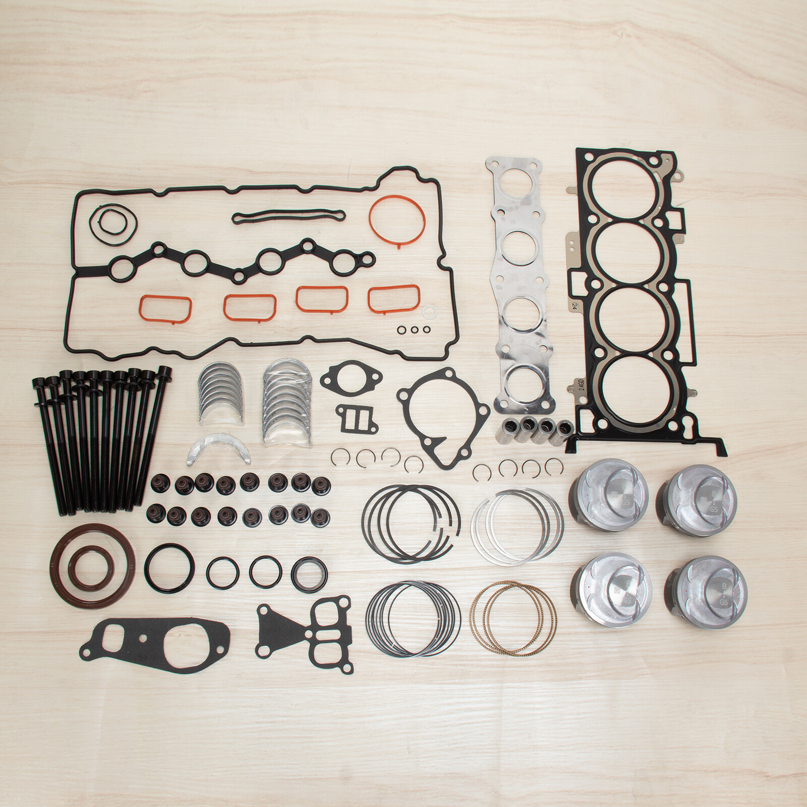 G4KJ Engine Rebuild Overhaul Gasket Kit Set Piston+Bearing For HYUNDAI KIA 2.4L Piston & Rings Set OE# Part Number: 23040-2G500, 23410-2G500 23040 2G500, 23410 2G500 230402G500, 234102G500 Gasket Set OE# Part Number: 21443-25000,209102GA02 224412GGA1,222242G000 22224-2G000,22441-2GGA1 Head Bolts Set OE#:223202C400 Main Bearings OE#:2102025120 Rod Bearings OE#:230602G411 Thrust Bearings OE#:2102025150 Fit for: Hyundai Kia 2.4 G4KJ Engine 2014-2020 FOR Kia Sorento 4-Door 2.4L 2011-2018 FOR Kia Optima 4-Door 2.4L 2014-2019 FOR Kia Sportage 4-Door 2.4L 2014-2019 FOR Hyundai Tucson 4-Door 2.4L 2011-2016 FOR Hyundai Sonata 4-Door 2.4L 2017-2018 FOR Hyundai Santa Fe Sport 4-Door 2.4L Package Includes: 1 Set of Engine Gasket Set 1 Set of Main & Rod Thrust Bearing Set 10 * Head Bolts 4 * Engine Piston 4 * Engine Piston Pin 1 Set of Engine Piston Rings Note: Please Carefully Check Whether the OE Number And Picture are What You Need Before Buying. If You are Not Sure Whether It Fits, Please Write to us. If There are Any Problems, Communication by Letter Will be More Effective.