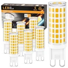 ✪ Feature -This 6w G9 led bulb can be your best choice to replace the 60W traditional halogen bulbs. -88 pcs energy-saving led chip provide refreshing bright daylight and save your electrical bill. -Fireproof ceramic material ensures better heat dissipation effect and offer longer lifespan. -Standard Bi-pin solid metal plate contact G9 base. Perfect for crystal chandelier, pendant, etc. -Relaxed yourself by 3000K cozy light. No UV or IR radiation, no visible flicker, no buzz or flash. -Transparent plastic cover allow the G9 bulb to provide 360-degree well-balanced illumination. ✪ Specification -Type: G9 Led bulb -CRI: 80+ -Power: 6W -Dimmable: No -Voltage: AC 120V -Luminous Flux: 5500LM -LED Type: 88pcs 2835SMD -Halogens Equivalent: 60W -Color: Warm White 3000K -Material: Plastic and Ceramic -Size: 0.73x0.73x2.5 inches -Beam Angle: 360-degree -Lifespan: 30000 hours ✪ Warranty & Package -24-month warranty -Package: 6psc 6W G9 LED Light Bulbs (3000K Warm White) 📣 Warning 1. The G9 LED bulbs are Non-Dimmable. 2. Make sure the size is suitable before purchase. 3. Please turn off the power before installation. 4. Keep away from any source of heat or water. Better Than Halogen: Featuring 88 2835SMD LED chips, this 6-watt G9 LED bulb is a smart choice for reducing your electricity bill.Note: G9 LED bulbs are longer than halogen bulbs. To ensure fitment, please check the size before purchase. 3000k Warm White: This G9 LED bulb emits a soft and cozy light to protect your eyes. It creates a comfortable atmosphere to make you feel relax and reduce the mental stress from work or study. Standard bi-pin G9 base, ideal for crystal chandelier, pendant, wall sconce, table lamp, office, hotel and other indoor applications. 360 Degrees Lighting: High transparent cylinder-shaped plastic cover allow the bulb light up from every surface to give you a uniform 360-degree illumination without dead angle that can never achieve from halogens. Fireproof Ceramic Body: This G9 LED bulb with ceramic body not only safe and fireproof, but also has excellent heat dissipation performance to extend its lifespan. (30000hours lifespan) Safe LED Bulb for Home: These LED light bulbs have obtained ETL, CE, FCC, and RoHS certifications, meeting the product safety standards. This means that they are safe to be used in the bedrooms, living rooms, or dining room.