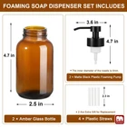【Farmhouse Amber Glass Soap Dispenser】Crafted from high-quality materials, this elegant dispenser features a captivating amber hue that not only enhances the aesthetic but also complements various interior design themes seamlessly. Whether your space is styled in rustic, modern, or classical décor, our foaming soap dispenser adds a touch of sophistication and warmth. Moreover, our Amber foam soap dispenser ensures that your hand soap remains effective for a longer duration without degradation. 【Farmhouse Amber Glass Soap Dispenser】Crafted from high-quality materials, this elegant dispenser features a captivating amber hue that not only enhances the aesthetic but also complements various interior design themes seamlessly. Whether your space is styled in rustic, modern, or classical décor, our foaming soap dispenser adds a touch of sophistication and warmth. Moreover, our Amber foam soap dispenser ensures that your hand soap remains effective for a longer duration without degradation. 【Easy to Press & Long-Lasting】Plastic foaming soap dispenser pump made of high-quality PET material, which is strong and not easily damaged. With a long spout design, the foam will not drip onto the bottle, keeping your countertop clean and tidy. The foam soap dispenser pump can efficiently create foam and smoothly deliver a proper amount of lather out with only light pressure. It's easy to use whether you're a child, a person who has arthritis or just pressing with one hand. 【Create Thick and Dense Foam】Glass Foaming soap dispenser has a wide-mouth design to help you fill soap effortlessly. Although the foam soap pump can convert most of the liquid soap into foam, it is also recommended to use foaming soap for better foam. If you use a liquid soap, please mix 4 ~ 5 parts water to produce foam. Surprisingly, liquid soap of the same quality can be saved to use as foam for a longer time. A foam hand soap dispenser can simply improve the quality of your life. 【2 Pack Glass Foaming Soap Dispenser for Bathroom】2 pack foam hand soap dispenser can satisfy your multiple usages wherever in the kitchen, bathroom, and laundry for hand soap, dish soap, body wash, shampoo, conditioner, face cleaner, lotion, shaving cream, and so on. The foam soap dispenser is 6.6*2.5 inches, which is compact and does not take up much space, while with the capacity of 8.5 fl oz / 250 ml can meet your needs so that you don't need to refill so often. 【6pcs Waterproof Label Stickers】Glass foaming hand soap dispenser comes with 6pcs of waterproof label stickers for you to choose from. The set contains shampoo, body wash, dish soap, face wash, and 2 hand soap labels to help you recognize and organize them well. The label stickers have waterproof coatings, which can effectively block the contact of water and paper, and will not become wet or warping. It excellently suits for bathroom and kitchen sink that are prone to moisture.