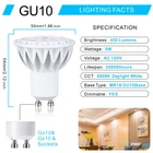 Product parameters Voltage : AC 120V Power : 5 Watts Dimmable : Yes CCT : 6000k ( cool white ) Lumen : 450 LM Beam angle : 38 degree ( narrow spot light ) Dimension : Dia.50mm , Height 54 mm ( 1.89 inch * 2.12 inch ) Material : Plastic Package including : 6 pcs of gu10 led light bulbs gu10 led bulbs dimmable 6000K bright white , color rendering above 82, color appears more vivid and natural ,no visible flicker, strobe and harsh glare. AC120 volt dimmable gu10 led spotlights, smooth dimming function from 10%-100% ,compatible with most eletronic LED dimmer switches Low consumption energy saving 5w LED GU10 bulb , provide 450 lumens , bright as 50w halogen bulb , saving over 85% on electricity bill gu10 light bulbs reflector GU10 base , dimension dia.48mm, heigth 50mm , is easy to fit into any standard gu10 recessed lighting fixtures Long lifespan gu10 lights last over 30000 hrs , widely used in Track Lighting , recessed ceiling lamps , Accent Lighting ,living room, living room and so on
