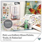 Gallery Glass PROMOGGSTR22 Stained Glass Painting Starter Kit, 10 Piece Set Including 6 Colors, 1 Bottle of Liquid Leading, 2 Plastic Surfaces and 1 Pattern Pack of 20 Molds Product Details Brand: Gallery Glass Age Range (Description): Adult Color: ['Crystal Clear', 'Rosy Pink', 'Sunny Yellow', 'Royal Blue', 'Emerald Green', 'Lavender'] See more Theme: Holiday Item dimensions L x W x H: 9.4 x 2.2 x 13.3 inches Paint Type: Spray Material Type: Glass, Paper, Plastic, Crystal Size: 2 Number of Pieces: 10 Item Dimensions: 9.4 x 2.2 x 13.3 inches Additional Features: Realistic stained glass effect, smooth finish, easy application, simple clean-up Seasons: All Seasons Theme: Holiday Color: ['Crystal Clear', 'Rosy Pink', 'Sunny Yellow', 'Royal Blue', 'Emerald Green', 'Lavender'] Global Trade Identification Number: 00 Manufacturer: Plaid Enterprises, Inc. Model Name: PROMOGGSTR22 Art Craft Kit Type: Paint UPC: 028995528941 Brand Name: Gallery Glass Age Range Description: Adult Included Components: 6 colors, 1 bottle of Liquid Leading, 2 plastic surfaces, 1 traditional pattern pack REALISTIC STAINED GLASS EFFECT - This unique stained glass paint kit features 6 brilliant colors, 1 bottle of Gallery Glass Liquid Leading, 2 plastic surfaces - 10" circle and 10" oval, and 1 traditional pattern pack - perfect for creating a realistic stained glass effect on all your DIY projects! This glass paint comes in a 2 oz size. Do not shake or stir. The colors in the set include Gallery Glass Crystal Clear, Rosy Pink, Sunny Yellow, Royal Blue, Emerald Green, and Lavender BEAUTIFUL, SMOOTH FINISH - Create a smooth stained glass look with no cutting, grinding or soldering when you use Gallery Glass Stained Glass Paint. Simulate the look of authentic stained glass easily with this permanent and removable paint EASY APPLICATION - Simply paint directly on your glass projects. This versatile stained glass paint can also be used to create whimsical suncatchers and clings that are repositionable. Paint on your surface vertically or horizontally. Use on a variety of surfaces including mirrors, plastic surfaces, glass bottles, vases, jars, windows, and so much more SIMPLE CLEAN UP - Clean up any extra Gallery Glass stained glass paint with a paper towel while wet Create your own unique stained glass project with the 10 piece Gallery Glass Stained Glass Paint Starter Kit. This stunning stained glass paint allows you to create a realistic stained glass look by simply painting directly on your projects. This kit includes 6 brilliant colors, 1 bottle of Gallery Glass Liquid Leading, 2 plastic surfaces, and 1 traditional pattern pack to complete your next stained glass project. Simply tape the pattern to the back of your surface, outline with Gallery Glass Liquid Leading then fill with your favorite Gallery Glass Stained Glass Paint colors. Paint on your surface vertically or horizontally. Gallery Glass Stained Glass Paint can be used on a variety of surfaces including mirrors, plastic surfaces, decorative glass bottles, vases, jars, windows, and so much more. From show-stopping window designs to gorgeous glass art accents, clings and seasonal décor, Gallery Glass is the affordable way to get a realistic stained glass look. Begin your next glass project with the 10 piece Gallery Glass Stained Glass Paint Starter Kit.