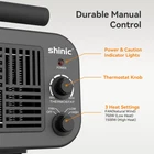 【Durable & Portable Space Heater】The SHINIC garage space heater features a heavy-duty, all-metal housing that is durable and strong enough to last for years. Equipped with Comfortable Padded Carry Handle, the portable heater is easy to move from room to room to keep you warm anywhere in your home 【Fast Heating】5,120 BTUS heat output provides you with endless warmness. 3 heating modes and thermostat: 750w low heat, 1500w for hoter and faster heating, and cool air. With a manual adjustment thermostat, the greenhouse heater will auto cycle on and off according to the room's ambient temperature to maintain a comfortable temperature 【Advanced Safety Features】The SHINIC Space Heaters for Indoor Use, ETL Listed. This electric space heater is safer to use in every corner of your house and is suitable for living rooms, workshops, garages and greenhouses.The shop heater for garage electric is also equipped with an overheat protection device, that will automatically shuts off the heater once the internal temperature becomes too high 【Adjustable Heating Angle】With 60° free adjustment angle, the electric heater for garage helps to correctly distribute the heat to the areas where it is most needed. Providing wide-reaching heat for your bedroom, garage, basement, office, desktop, etc 【The Shinic Customer Service】1-Year-Limited-Warranty. If you are not satisfied with the greenhouse heater in any way, please feel free to contact our customer service team and we'll be happy to help! We guarantee that any questions you may have will be answered within 0-12 hours. Small space heater for office, Home, Desk, Desktop, Garage, Office, Bedroom, Basement
