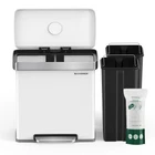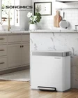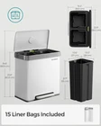[A Boon for Your Kitchen] Your garbage can doesn’t have to look like garbage; with a greenish-gray color and a simple silhouette, this step trash can will be an eye-catcher in your kitche [Hands-Free Operation] It’s hard to open the lid of a rubbish bin with your hands while you’re eating, and that’s why we designed this trash can with a pedal, letting you have your hands free to tuck away your waste [Strong yet Soft] The rigid stainless steel body of this garbage can withstands long-lasting use; the soft-close lid ensures the environment remains peaceful, with no loud slamming to be heard Bucket in Bin: This trash can includes 2 removable buckets for easy cleaning if your garbage bag accidentally breaks and spills; the buckets come with convenient metal handles so you can lift them out [What You Get] A dual trash can sized at 23.2”L x 12.8”W x 25.7”H with 2 x 8-gallon compartments, 15 trash bags, plastic inner buckets, and a soft closure mechanism for easy waste disposal Color: White Material: Powder-Coated Stainless Steel Bin, PP Plastic Inner Bucket, ABS Plastic Lid Product Size (Without Foot Pedal): 23.2”L x 12.8”W x 25.7”H (59 x 32.5 x 65.2 cm) Height with Lid Open: 37” (94 cm) Size of Each Inner Bucket: 10.6”L x 10.6”W x 23”H (27 x 27 x 58.5 cm) Size of Foot Pedal: 5.3"L x 1.6"W (13.5 x 4 cm) Volume: 2 x 8 Gallons (2 x 30L) Product Weight: 23.1 lb (10.5 kg) Package Contents: 1 x Trash Can 15 x Trash Bag * THIS ITEM IS BRAND NEW IN BOX . NEVER USED. BOX OPENED TO VERIFY ITEM LISTED . IF BOX IS DAMAGED IN ANYWAY , PHOTOS WILL BE PRODIDED TO IDENTIFY THE ISSUE AND A NEW REPACKAGED OPTION WILL BE PROVIDED TO THE BUYER *