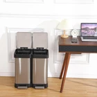 Step-Open Trash Can with Soft-Close Lid, Modern, Minimalistic for Home, Kitchen, Laundry Room, Office, Bedroom, Bathroom, with Inner Bucket Silent and Smooth Closure: The dual trash and recycling bins feature a soft-close lid mechanism that ensures quiet and gentle closure, creating a peaceful environment. The internal hinge design prevents lid slamming noise, minimizing disturbances and providing a pleasant user experience with its silent operation. The smooth closure adds a touch of convenience while maintaining a tranquil atmosphere in the kitchen or any space where the bins are used. Enhanced Kitchen Hygiene: Constructed from durable stainless steel, the recycling bin is resistant to fingerprints and dirt, making it easier to maintain a clean and hygienic kitchen environment. The bottom seals of the bins further prevent spills and leaks, contributing to a tidier and odor-free kitchen space. This improved hygiene helps create a healthier and more welcoming atmosphere in the kitchen, promoting cleanliness and sanitation. Hands-Free Operation Convenience: Each compartment of the garbage can features a sturdy steel pedal for convenient and hygienic hands-free operation. This hands-free operation is especially useful in the kitchen when hands are full or messy, allowing for easy waste disposal without the need to touch the bins. The hands-free design adds a level of convenience to daily waste management tasks, simplifying the process and promoting cleanliness. Efficient Space Utilization: Despite offering dual compartment functionality, the dual trash and recycling bins are designed with a space-saving layout that conserves space in small kitchens or homes with limited storage. The separate compartments for waste disposal and recycling maximize efficiency and convenience, providing a practical solution for households of all sizes. The compact design ensures that the bins can be easily integrated into various spaces without occupying excess room. Dual Compartment Recycling Convenience: The garbage can with a lid is thoughtfully designed with two separate compartments for easy waste sorting and recycling. This dual compartment feature simplifies waste management and encourages recycling practices in the home by providing a convenient way to separate and dispose of recyclable materials responsibly.
