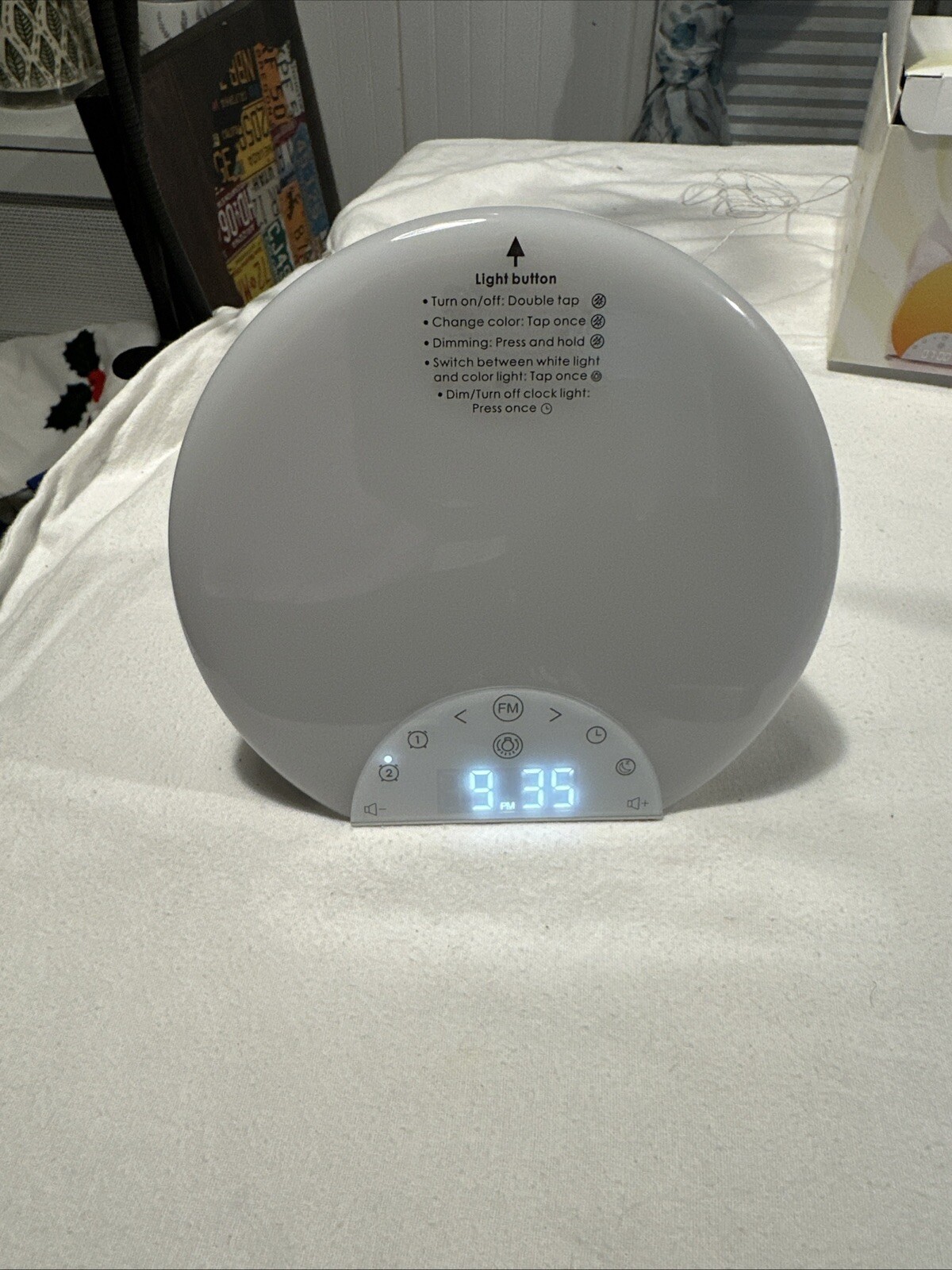 Start your day off right with this stunning sunrise alarm clock! This wake-up light is perfect for kids, adults, and heavy sleepers alike. With its dual alarm feature, you can set two separate alarms for yourself and your partner, ensuring that you both wake up on time. The clock is beautifully designed with a white color and a sunrise theme, making it a great addition to any home decor. It is lightweight at only 1.54 pounds and has a compact package dimension of 8.15x7.64x4.45 inches, making it easy to place on your nightstand or desk. This alarm clock is a must-have for anyone looking to start their day off right!