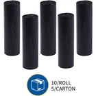 Extra-strong, heavy-duty trash bags are made with puncture-resistant resins and are three times more puncture-resistant than standard liners. They are ideal for extra-heavy trash applications, such as heavy food, office waste, boxes, cans and construction debris because they are puncture-resistant to sharp objects. Star-bottom seal is designed for a more even distribution of contents. Two-ply, low-density bags come in a convenient coreless roll for easy dispensing anywhere. The 1.5 mil thick bag holds 55 to 60 gallons. The bag size is 39" x 56". Black plastic resin conceals contents so, even if your janitorial crew collects garbage during regular work hours, you and your guests will not have to look at unsightly garbage. Sold as 50/Carton. Heavy-duty liner trash bags feature 1.55 mil thickness and are three times more puncture-resistant than standard can liners. 50 trash bags per box. Heavy bags are good for industrial waste, including sharp, heavy, and wet objects. The low-density plastic keeps heavy or wet trash from stretching holes in the bag. The 60 gal. bags fit large receptacles at your home or office. Star-sealed bottom for the best leak prevention. Black coloring keeps contents hidden. Heavy-duty bags hold your sharp or heavy objects without tearing.