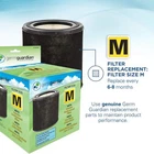 GermGuardian True HEPA Filter Air Purifier for Home, Office, Bedrooms, Filters Allergies, Pollen, Smoke, Dust, Pet Dander, UV-C Sanitizer Eliminates Germs, Mold, Odors, Quiet 4-in-1 AC4700BDLX Product Details Color: Black Brand: GermGuardian Product Dimensions: 8.66"D x 8.66"W x 14.96"H Floor Area: 728 Square Feet Noise Level: 60 dB Color: Black Brand: GermGuardian Product Dimensions: 8.66"D x 8.66"W x 14.96"H Floor Area: 728 Square Feet Noise Level: 60 dB Particle Retention Size: 0.1 Micron Controller Type: Button Control Wattage: 55 watts UPC: 817624012537 Global Trade Identification Number: 37 Manufacturer: Guardian Technologies Item Weight: 7.55 pounds Country of Origin: China Item model number: AC4700BDLX Care instructions: Please see user manual Assembly required: No Number of pieces: 1 Batteries required: No Included Components: Air Purifier, Filters 360-DEGREE AIR PURIFIER - True HEPA 360-degree air filter reduces up to 99.97% of harmful germs, dust, pollen, pet dander, mold spores, and other allergens as small as 0.1 microns from the air POWERFUL PERFORMANCE - This powerful 15-inch tower purifier circulates and filters the air 4.8x per hour rooms up to 150 sq. feet, and 1x per hour in rooms up to 728 sq. ft. CADR: Dust (106) Pollen (106) and Smoke (97) FIGHTS GERMS - UV-C light helps reduce airborne viruses such as influenza, staph, rhinovirus, and works to reduce volatile organic compounds TRAPS ALLERGENS - Pre-filter traps dust, pet hair, and other large particles while extending the life of the HEPA filter REDUCES ODORS - Activated charcoal filter helps to reduce unwanted odors from pets, smoke, cooking fumes, and volatile organic compounds (VOC) GENUINE REPLACEMENTS - Only use Genuine GermGuardian replacement parts to maintain performance REPLACEMENTS - Replace the filter every 6-8 months. Filter: GermGuardian filter M (FLT4700) or a 4 pack of GermGuardian carbon filters (FLT47CB4) ENERGY STAR CERTIFIED - This air purifier was rated for its ability to filter tobacco smoke, dust, and pollen from rooms and be Energy Star Certified and CARB compliant This 360 degree Air Purifier with its HEPA Filter is ideal for any medium size room. Perfect for allergy sufferers, the HEPA filter captures 99.97% of dust and allergens as small as 0.1 microns in size, while the charcoal filter captures odors from pets, smoking and cooking. More than just a filter, UV-C light helps reduce airborne bacteria, viruses, mold spores, and works to reduce volatile organic compounds. Standing 15 inches tall, this air purifier it is lightweight and ideal to use in rooms up to 728 sq. feet. Includes a UV-C control and a filter change indicator. Choose from 3 speeds, including a low speed that runs ultra-quiet. This air purifier is Energy Star certified and comes with a 3-year limited warranty. Filter Replacement: Replace with Guardian filter M (FLT4700) or a 4 pack of Guardian’s carbon filters (FLT47CB4) Tested with Staphylococcus Albus, and Escherichia Coli, Aspergillus Niger, and Phi-X174