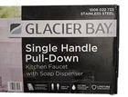 The Glacier Bay Paulina 1-Handle Pull-Down Sprayer Kitchen Faucet in Stainless Steel is a stylish and functional kitchen fixture suitable for kitchen sinks. This high-arc faucet features a lever handle, a 1.8 GPM flow rate, and a pull-out sprayer for added versatility. The package includes a soap dispenser and deckplate, making installation easier with the FastMount mounting system. With a sleek satin finish and farmhouse style, this Glacier Bay kitchen faucet is a modern addition to any kitchen.