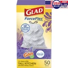 Welcome to buy your favorite products in Mr. John's eBay store. I sell brand new, unopened genuine products, all made in the United States and shipped from the United States. Please contact me for any questions about the products (pre-sales consultation, after-sales problems). You can tell me anything, as long as you are willing to let me know, I will reply within 24 hours, thank you! Note: Due to my carrier restrictions, some addresses may not be delivered. The probability is very small, about 2%. If unfortunately I cannot deliver to your address, I will contact you immediately and give you a full refund , thank you! ! Highlights FORCEFLEX STRENGTH: Glad’s trusted ForceFlex technology allows the bag to stretch and expand over heavy loads with sharp edges, delivering durable strength; packaging may vary GAIN LAVENDER SCENT: Enjoy the steady release of Gain Lavender with Febreze Freshness, a delightful addition to your kitchen or household environment 2 LAYERS EXTRA LEAK PROTECTION: These kitchen trash bags are designed to uniquely trap liquids and prevent leaks and are strong enough to handle the heaviest loads ODOR PROTECTION: Provides lasting freshness with OdorShield® technology that traps, locks and neutralizes kitchen odors, helping to keep your kitchen smelling clean GRIPS THE CAN DRAWSTRING: The durable 3-ply drawstring design grips the can so the bag stays in place, and makes it easy to close and easy to carry out the trash, with no fear of leaks or tears Description Let the stretchable strength of Glad® ForceFlex handle all the messes our busy daily life can throw at it and then some. Glad® Tall Kitchen Drawstring Trash Bags are designed with ForceFlex technology to give extra flex as it expands around sharp edges and heavy loads, so you can pack it in while resisting tears, rips and punctures. These trash bags are designed with two layers for extra leak protection. RipGuard® and LeakGuard® technology prevent seepage of liquids and keep trash contained. Fight nasty kitchen odors with the exclusive Glad® trash bag combination of steady release of Febreze freshness and irresistible Gain Lavender scent that traps, locks and neutralizes odors. The durable Grips The Can Drawstring ensures a tight grip on the trash can to keep it in place. Take the trash to the curb with no fear of leaks and tears, and no frustration. FEBREZE and GAIN are used under license from The Procter & Gamble Company or its affiliates. Usage Directions: Lift the trash bag from the container by pulling the drawstrings on either side of the bag. Knot the drawstrings for added security. Carry the bag by the drawstring and toss into garbage. Caution Statement: Plastic bags can be dangerous. To avoid danger of suffocation, keep all plastic bags away from babies and children. DO NOT USE FOR FOOD STORAGE.