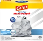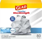 25% MORE DURABLE*: Glad ForceFlex MaxStrength X-Large Kitchen Trash Bags are 25% more durable versus Glad 20 gallon ForceFlex X-Large kitchen bags; packaging may vary FORCEFLEX MAXSTRENGTH: These bags feature double side seams, a reinforced bottom and grips the can drawstring plus Leak and rip protection against leaks, rips and tears NEUTRALIZES TOUGH TRASH ODORS: Febreze freshness in a subtle Fresh Clean scent works to trap odors and helps eliminate garbage smells in the kitchen PRODUCTS WITH LESS PLASTIC: Glad ForceFlex MaxStrength X-Large Kitchen Trash Bags are made with less plastic than the competition** without sacrificing strength DOING MORE TO WASTE LESS: If everyone in the US chose Glad drawstring trash bags it would save 100 million pounds of plastic from going into landfills every year** Glad ForceFlex MaxStrength X-Large Kitchen Trash Bags provide strength and Febreze Freshness to help keep your kitchen smelling fresh and clean. These 20 gallon bags are 25% more durable* with an outer leak protection layer and an inner layer that stretches to prevent rips and tears. Febreze freshness in a Fresh Clean scent provides odor neutralization against even the toughest kitchen smells. The drawstring grips to the trash can, keeping the bag in place. With double side seams and a reinforced bottom, these tall kitchen trash bags are made with 100% renewable electricity. And heres something cool: if everyone in the U.S. chose Glad drawstring trash bags it would save 100 million pounds of plastic from going into landfills every year**. Certain trademarks used under license from The Procter & Gamble Company or its affiliates. *Vs. Glad 20 gallon ForceFlex bag. **Based on IRI sales data. Glad Kitchen drawstring bags are made with 7% to 22% less plastic vs top 10 competitors.