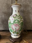 Glass Ginger Jar Shape Table Lamps with Painted Flowers & Gold Trim Set of 2