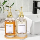 Clear Glass Soap Dispenser with Rust Proof Stainless Steel Pump This package includes: two clear glass soap dispensers with a height of 8.7'' and a diameter of 3.2 ''. They can hold 18oz liquid. Equipped with premium ABS plastic pumps, a wooden tray and 12 durable waterproof labels, you will never confuse them——It is recommended to assemble the pump first and then attach the label, so that the label is in the same direction as the pump nozzle High quality: The soap dispenser is made of high-quality glass. The reusable clear pump bottles allows you to clearly see the contents and reminds you to refill. The pump is made of premium ABS plastic, will not rust and is very durable Versatile: Use the cute soap dispenser for hand soap, dish soap, lotion, shampoo, body wash, massage oil, honey, syrup, and more Exquisite design: This soap dispenser is not only very practical but also highly decorative. We can use it for kitchen decoration, modern farmhouse decoration, or modern home decoration. No matter where we place it, it will bring a different decorative effect and enhance your mood Brand introduction: is an enterprise that creates modern, simple, and functional designs, aiming to help organize your home in an elegant and beautiful way