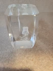 This is a clear glass paperweight with a 3D laser etched eagle and American flag design. It is a patriotic and collectible item that would make a great addition to any desk or display. The unit quantity is one and it is made in China. The brand is Glass and it is not handmade.