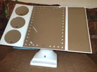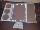Makeup Mirror By gloTECH with Bluetooth Speaker Chargeable 5 Mirrors (middle and right are normal magnification, left panel lower is 3x, middle is 5x, top is 10x magnification) in Mint Condition LED lighted. Mirror in like new condition. Used a minimum number of times, this item was TESTED (LED LAMPS AND BLUETOOTH SPEAKER Both Functions WORK). THERE IS NO PHONE ATTACHMENT ON THIS Mirror. You would need to provide your own micro USB cable for charging. Please ask questions, item sold in the as is condition, please inspect pictures. Please pay within 2 days, thank you!! See picture #5 - blue button activates Bluetooth by depressing. Switch above activates LED LAMPS, you don't push the button, just pass your finger over button, I guess is partial touch less. Beautiful makeup mirror, get it before someone else does.