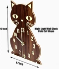 Wall Clock Glow in the Dark Night Light Cat Wall Clock Silent Non-Ticking Wooden Color: Brown Display Type: Analog Style: Art Deco Special Feature: Illuminated Product Dimensions: 8.8"W x 11.85"H Power Source: Battery Powered Age Range (Description): 3+ years old Shape: Cat Material: MDF Wood About this item The wooden wall clock can absorb light energy at day and glow in the dark. The glow time depends on the light absorbed in the day. The more the absorbed light source, the longer the intensity and duration of the night light. With cat theme, blessing function of night light,the cat clock can be used as a nice room decoration, suitable for living room, study room, bedroom, kitchen, office, etc. It's made of special brown MDF (Medium Density Fiberboard) material, metal pointers,no glass,no frame.It's simple and elegant clock. 12 Inch glow in the dark wall clock with large bold numbers make it easy to see from any corner of your room.Even the elderly or people with poor eyesight can see very well. Precise quartz sweep movement guarantees accurate time and absolutely silent environment. Lovely shape, glow in the dark / luminous , bring convenience to your life,it's nice gift for cat lover,friends,family,elderly,children etc.You can send your sincere wishes and greetings to your friends' birthday parties, company celebrations, Christmas, Mother's Day, Father's Day, etc
