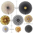 "When Black meets Gold Refinement and Luxurious" This item includes : 4 types of paper fans with different diameters about 16 in/12 in/10 in/8 in(40cm/30cm/25cm/20cm), and each type have double. These party decorations can be widely used for Wedding,Halloween,Happy new year, Happy Birthday, Carnival ,Welcome or Graduation Party and so on. They are degradable and can be reused multiple times. In order to avoid packaging damage during product transportation, we use transparent adhesive and self-adhesive packaging. Add to cart and get excitement into your party. ☆PAPER FANS Color: Gold/Black/White ☆Style characteristics:Dots / Rings / Foil / Specular Notice: -For transportation,we folded the fans to package.Please unfold the fans when you open the package and Paste the fan sides to each other.They are really beautiful. -In order to avoid packaging damage during product transportation, we use transparent adhesive and self-adhesive packaging after checking. -We can hang them to the wall/windows/ceiling by the thread or Fishing wire.They look Wonderful!!! -Look forward to your Satisfaction and Happy Feeling. If you have other questions please us and We are happy to assist you. Material : Paper Package includes : 2pcs x 16 in, 2pcs x 12 in, 2pcs x 10 in, 2pcs x 8 in Used for wedding/birthday/carnival/welcome/happy new year/graduation Party Decorations Colored on Both Sides-Gold Black and White;Design:Foil/dots/stripe/rings Degradable and can be reused multiple times;DIY