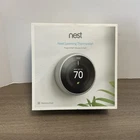 Upgrade your home's temperature control with the Google Nest 3rd Generation Learning Thermostat T3007ES, designed to deliver comfort and energy efficiency. The thermostat's sleek stainless steel design complements any home décor, and it's compatible with a wide range of heating and cooling systems, including central heating radiators and heat pumps. With built-in Wi-Fi and the ability to connect with the Nest ecosystem, you can control the temperature in your home using either the app or your voice. The device comes with a 10-wire configuration, allowing for easy installation and multiple mounting options, including wall, surface, and cabinet mounting. It also features 7-day programmability, ensuring that your home's temperature is always set to your preferred level. Open box Bin 1-26-25
