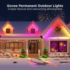 Govee 150ft Permanent Outdoor Lights Elite, Smart Festive RGBIC Lighting Features: Festive RGBIC Lighting Eye-Catching Lighting Effects Outdoor Durability Smart App & Voice Control Simple Installation Item # 1870005 Item Description Govee Permanent Outdoor Lights Elite Short Features Festive RGBIC Lighting; Eye-Catching Lighting Effects;Outdoor Durability; Smart App & Voice Control; Simple Installation Introduction Paragraph Adorn your home with a set of decorative permanent outdoor lights designed for any occasion. Install on the eaves, fences, or corridors to create visually appealing home decor. Features ✓Festive RGBIC Lighting Effects: Inspired by nature and holidays. ✓Outdoor Durability: The string lights are IP67 water resistant with an IP65 control box. Made from anti-UV material. ✓Eye-Catching Lighting Effects: Reveal a unique triangular lighting effect. ✓Simple Installation: Use the provided VHB glue and clips to install each light in 8 seconds. ✓Multiple Controls: Control via Govee Home App or voice assistants. ✓Matter-Enabled: Matter allows compatibility with major smart home ecosystems, providing more ways for users to customize and future proof their smart homes. Includes ★ 5.1m/16.7ft Lights String x9 ★ 3.6m/11.8ft Extension Cable x2 ★ 1.2m/3.9ft Extension Cable x2 ★ Clips x114 ★ Control Box x1 ★ Power Adapter x1 ★ VHB Tape x27 ★ Cable Clamp x3 Specifications Dimensions (L × W × H/D): 39.7cm × 15.3cm × 28.4cm ( 15.63 in. × 6.02 in. × 11.18 in.) Weight: 4.85 kg (10.7 lb.) Warranty 1 year limited