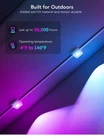 Open box New item! Festive RGBIC Lighting: Choose from 75 scene modes to light up outdoor decor with the govee permanent outdoor lights. This outdoor lights are featured DIY lighting for every occasion. It can only connect up to 9 light segments and 1 extension cables. Eye-Catching Lighting Effects: The lens design reveals a unique triangular lighting effect. The wall washing depth is greater than 16 inches, while the brightness of each light is 26 lumens. Install the lights 2-4 inches away from the wall surface. Outdoor Durability: Added anti-UV material, the permanent outdoor lights are IP67 waterproof with IP65 Rated Control Box and Adapter. The outdoor decor can use for up to 50,000 hours and work in bad weather from -4°F to 140°F (-20°C-60°C). Simple Installation: Must use provided VHB glue and clips to install each light in 8 seconds. Splice through waterproof joints every 16.4ft and install the outdoor lights on eaves. Please note that the govee permanent outdoor lights cannot be cut. Smart App & Voice Control: Use Govee Home App to control colors of each govee outdoor light independently and set timer function to light up holiday parties. Pair the outdoor decorations with Alexa and Google Assistant for smart voice control. ATTENTION: DO NOT use Govee Permanent Outdoor Lights (Models: H705A/H705B/H705C) in connection with Govee Permanent Outdoor Lights 2 (Models: H705D/H705E/H705F) or Govee Permanent Outdoor Lights Elite.