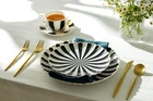 Set of 1 - 8.5" plate - One 8.5" dessert plate Specifications Dessert Plate Diameter: 8.5" Material Porcelain with gold trim Care Advice Dishwasher Safe Hand wash recommended Not microwave safe due to gold trim
