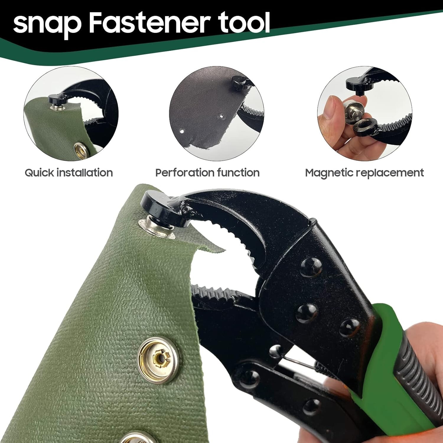 Effortless Snap Installation Tool with Punch and Magnetic Design - Green 15mm ‹ › ‹ › ‹ › ‹ › ‹ › ‹ › ‹ › ‹ › Effortless Snap Installation Tool with Punch and Magnetic Design - Green 15mm Transform the way you approach snap installations with our innovative repair kit, designed for those who demand efficiency, safety, and ease. This expertly crafted tool will become an essential part of your toolkit, providing a seamless experience for all your snap-related projects. Features: Easier, Safer, More Efficient: A revolutionary snap fastener tool that simplifies the installation process, making it user-friendly for everyone. Multiple Functions: Equipped with a unique punching function to create clean, precise holes for your metal snaps, and fortified with a magnetic suction design for effortless installation. Durable and Rust-Resistant: Constructed from premium alloy steel, ensuring longevity and resilience against rust and corrosion for years of reliable use. Adjustable Tail Bolt: Easily adapt to various material thicknesses such as canvas, boat covers, leather, and fabric for a perfect fit each time. Great Value: Includes 40 sets of snap components, making it an ideal choice for frequent installations and DIY projects. Benefits: Save time and frustration with an effortless installation process. Achieve professional-quality results in the comfort of your home or workshop. Versatile tool perfect for a wide range of materials and applications. Invest in a durable tool that minimizes the need for additional purchases. Why Choose Our Snap Fastener Tool? Revolutionize your crafting and repair projects with our Efficient Snap Installation Tool. Say goodbye to traditional struggles and welcome a smoother, safer method for securing snaps. Ideal for both novices and experienced crafters, this tool offers the versatility and reliability you need for any project. With its integrated magnetic features and adjustable tail bolt, you can enjoy absolute precision every time. Make the smart choice - elevate your craft and efficiency with our Snap Fastener Tool today! Shipping Free & Fast Shipping - We offer free shipping to most of the USA with a normal delivery time of 3-10 businessdays. However, due to various situations, additional delivery time (up to 3 weeks) may be required for some items. Alternative Carriers - We may use alternative carriers (e.g. USPS, FedEx, UPS, etc.) to ensure your package arrives safely and on time. Due to the use of multiple carriers, we are unable to provide a tracking number automatically. Handling Time - Orders are processed and shipped within 1-5 business days of receiving cleared payment. Shipping Restrictions - Shipping to Alaska, Hawaii, Puerto Rico, Guam, and other US territories may incur shipping charges or delivery restrictions. Please contact us before ordering, or your order can be refunded/cancelled. State Restrictions - There may be restrictions based on your state of purchase. For example, certain items may not be shipped to California due to state regulations. Contact for Tracking Updates - If you require tracking updates or have any concerns about the delivery of your order, please feel free to contact us, and we will be happy to assist you. Return Please see our ebay return policy. We do not accept return on most products. This is to avoid customers mis-using ebay returns. All sales are final. Please be sure to check the return policy listed at the top of the listing. In rare cases, we may accept returns, if the buyer pays both ways shipping and 20% restocking fee. If you are un-sure of return policy of a particular item, please ask before buying. Payment We accept all major credit cards, PayPal, and Apple Pay for your convenience. Your payment information is secure and encrypted to ensure a safe and seamless transaction. Please complete your payment within 3 days of purchase to avoid any delays in shipping. Feedback Your feedback is extremely important to us. We strive to provide the best products and customer service possible. If you are satisfied with your purchase, please take a moment to leave us a positive review. If you have any concerns or issues with your order, please contact us before leaving negative feedback. We are committed to resolving any problems and ensuring your satisfaction. Contact Us If you have any questions or concerns, please feel free to reach out to our customer support team. You can contact us through the eBay messaging system. We are available Monday to Friday, 9:00 am to 5:00 pm EST, and we will do our best to respond to your inquiry within 24 hours. Buy it now and enjoy a pleasant shopping experience! UPC: Not Set MPN: Not Set Unit Quantity: 1 Suitable For: Blazers & Suits,Costumes,Crafts,Drapery,Jackets & Coats,Shirts & Blouses,Upholstery Color: Green Material: Metal Type: Snap Buttons Brand: Unbranded Shape: Round Unit of Sale: Pack Country/Region of Manufacture: Not Set Unit Type: Unit