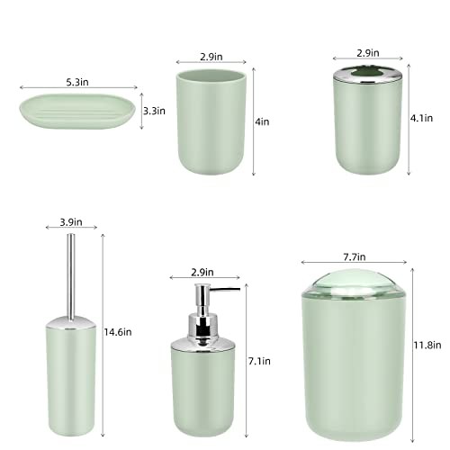 Return Policy Fast Delivery Trusted seller Bathroom Accessories Set,Green Bathroom Set,7 Pieces Bathroom Accessory Set,Tray,Toilet Brush,Trash Can for Bathroom Décor and Housewarming Gifts Product Description Plastic Complete Bathroom Accessory Set:Featuring a Toothbrush Holder,Toothbrush Cup,Soap Dispenser,Soap Dish,Trash Can,Toilet Brush & Holder,our bathroom accessories set ensures a unified and stylish bathroom aesthetic. Durable Design:Our Grey bathroom accessories set crafted from Durable and cleanable plastic, it effortlessly withstands daily wear and tear, ensuring long-lasting use. Space-Saving Design:Maximize your bathroom space with our compact and cleverly designed grey bathroom accessories set.Whether you have a small powder room or a spacious master bathroom, our bathroom accessories set offers smart storage solutions without taking up unnecessary space. Vibrant and Stylish:Add a pop of color and style to your bathroom with our vibrant and modern bathroom accessories set. they effortlessly enhance the aesthetics of your space while providing practical functionality. Versatile & Nice Gift:Our bathroom accessories set is a perfect fit for any space, whether it's your home bathroom, dorm, hotel, or RV. Its modern design effortlessly complements any bathroom, making it an ideal present for housewarmings or new homes.Whether it's for your family, friends, colleagues, or customers, this bathroom accessories set makes the nice gift. Shipping Returns Payment Shipping Shipping is FREE to all addresses other than APO/PO boxes in the lower 48 states. All our stock ships from US-based warehouses. Shipped via USPS or UPS (depending on location and package weight) Unless stated otherwise, all orders will ship within 24-72 hours of your payment being processed. Check our feedback to see the great reviews of FAST shipping we offer. Returns Seller does not accept returns Payment We currently accept payment via eBay managed payments only. Once payment is cleared, we will dispatch your shipment within 1-3 business days. Please refer to the "Shipping" tab for more information regarding shipping speed to your destination.