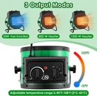 Greenhouse Heating Kit: package include 1 x 110V greenhouse heater fan(1500W heating, 800W heating, 25W cooling); 1 x 1800W digital heat thermostat, temperature range of 40°F-108°F (5°C-42°C); 1 x additional thermohygrometer (temperature range: 10°C-50°C, humidity range: 10-99 percent); 1 x user manual 3 Output Modes for Accurate Climate Control: this greenhouse heater has 3 output modes: 25W Fan / 800W Heat / 1500W Heat, adjustable temperature range is 40°F-108°F (5°C-42°C), suitable for 120 sq. ft. Spaces; You can adjust the temperature according to plant growing conditions or other different needs Smart Thermostat Overheat Protection: the waterproof temperature probe can sense changes in surrounding room temperature, and the temperature controller accurately controls the temperature range you set; Greenhouse heater will stop when the set temperature is reached and start heating when it is 2 degrees fahrenheit below the set temperature Quality and Safety: the greenhouse heater is made of quality flame retardant materials, utilizes PTC ceramic heating, IPX4 waterproof rating; Rapid cooling: safeguard against accidental burns or shutdown, enhanced durability and safety User Friendly Design, Convenient Operation: the electric greenhouse heater is equipped with a high power copper motor for efficiency and low energy consumption, smooth and quiet performance; Additional temperature and humidity monitors enable real time indoor climate monitoring; The handle and base are non slip and easy to move, and the air outlet angle can be adjusted freely Note: 1. If applied in an environment with a lot of dust or feathers, it needs to be cleaned regularly. 2. When the product is applied continuously for 48 hours, it can be powered off for about 30 minutes to give the internal heating wire a rest, which can extend the service life