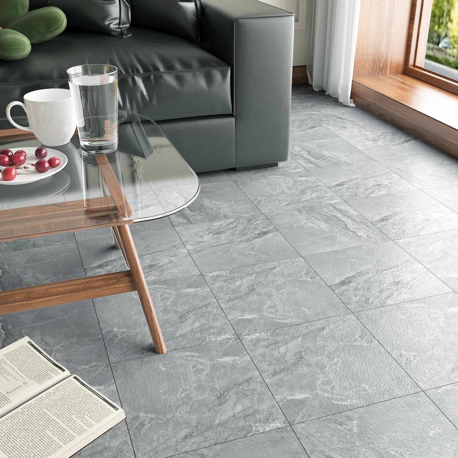 Grey Marble Peel and Stick Floor Tile Elevate your space with gray marble vinyl flooring. Its gray tones and intricate texture mimic the luxury of natural marble, adding a touch of grandeur to any room. It's perfect for modern, minimalist or classic interiors. Transform your space with vinyl floor tile, the ultimate blend of style, durability and affordability. Whether you're renovating your home or upgrading your commercial space, the possibilities are endless with vinyl sheet flooring. Vinyl plank flooring is durable and can withstand the harsh elements of everyday life, resisting scratches, dents, stains. It is ideal for high-traffic areas such as hallways, kitchens and bathrooms, as well as homes with pets and children. Its wear-resistant layer provides an additional protective barrier that can be easily cleaned and maintained with only regular sweeping and occasional mopping. Vinyl floor tiles can be applied to flat, clean and dry floors. Vinyl flooring can be installed over most existing subfloors, including concrete, wood,linoleum and laminate, saving the time and money required for preparation. Vinyl floor tile is easy to install, just peel and stick. It is self-adhesive and requires no glue or complicated tools.In just a few hours, you can have a brand new floor to brighten up your home. Thickened vinyl flooring has been upgraded to a thickness of 0.06 inches. It resists curling and warping, and after gluing it has minimal gaps.It is durable, removable, easy to clean, non - fading, non-slip, waterproof and renter friendly!Vinyl floor tiles are waterproof.It's perfect for cluttered bathrooms or kitchens. If you want to increase its waterproofing, you can apply a silicone sealant to the floor tile joints. TIP : To avoid color variations, order all required vinyl flooring at the same time to ensure they are from the same production batch. 【Size】: Each grey marble vinyl tile is 12"×12", 1.5 mm thick. Set of 4 pcs covering 4 sq. ft 【Realistic Marble Vinyl Flooring】: Gray marble vinyl flooring combines the elegance of natural marble with the practicality of vinyl flooring. Its gray hues and patterns create a realistic marble look that is perfect for both modern and classic interiors 【Waterproof Marble Vinyl Flooring】: Our self-adhesive marble vinyl floor tiles have a waterproof layer that easily prevents spills and splashes. It protects the floor from water damage, keeping it perfect and durable even in wet environments 【Premium Vinyl Flooring】: Made of high quality vinyl material, which is waterproof, non-slip, durable, thick, easy to clean, wear-resistant, non-warping and non-expanding. It removes without sticky residue and is renter friendly 【Versatile Vinyl Floor Tiles】: It is suitable for concrete, ceramic, wood and other floors, stairs, laminates, linoleum,shelves, ceilings, countertops, desks, and can be used to decorate kitchen, living room, dining room, bedroom, bathroom, RV, cubicle