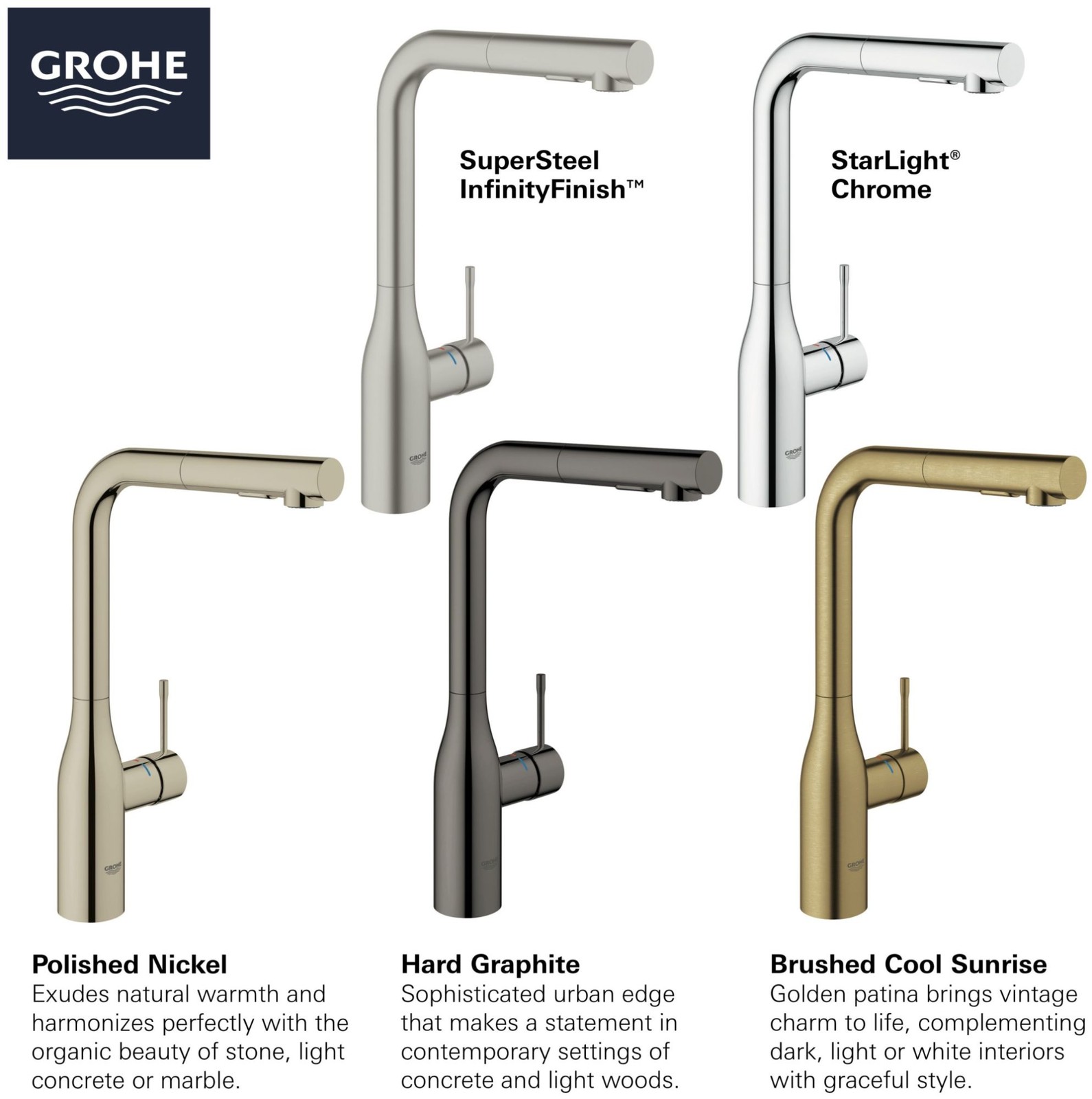 Powered by Frooition Top Products Kitchen Bathroom Lighting Fans Hardware Decor & Organization Grohe 30 271 Essence 1.75 GPM Single Hole Pull Out Kitchen Faucet with Dual Spray, SpeedClean, EasyDoc, and SilkMove Technology Overview Item Description Sleek sophisticated and available in an array of exquisite finishes, the Grohe Essence single-handle kitchen faucet combines distinctive style and impressive features engineered for today’s well-appointed home. Equipped with pull-out spray control, a 360° swivel, and a tough, scratch-resistant surface, the Grohe Essence kitchen faucet meets the demands of daily living beautifully. This faucet is covered under Grohe's limited lifetime warranty Stand Out Features of this Faucet Dual Spray Offers easy switching between regular water flow and high-performance spray. Pullout Spray Increases the operating radius of your faucet Product Features: GROHE SilkMove — advanced ceramic cartridge delivers a lifetime of ultra-smooth operation and precise control of the water temperature and volume GROHE StarLight — a flawless, robust, long-lasting designed to be extremely resistant to dirt and scratches Dual spray with toggle function: switches between regular water flow and spray without turning off the water 360 degree Swivel radius Weight operated pull-back mechanism for hose Integrated temperature limiter — can be set to conserve hot water or to prevent scalding Adjustable flow rate limiter Single lever handle Forward rotating lever to prevent backsplash interference GROHE QuickFix® Plus installation system Grohe Technologies and Benefits: SilkMove Cartridge : The rich and smooth handling of our single lever faucets conveys pure quality. As you change the temperature from hot to cold, one ceramic disc glides effortlessly across the other with absolute precision. These cartridges are manufactured in a high-tech process and feature discs made from a space-proven ceramic alloy. The SilkMove cartridge is yet another example of design and technology fusing to bring you an enhanced water experience. Starlight Finish : Continuously improving over the last 70 years Grohe's unique plating process has been refined to produce and immaculate shiny surface that is recognized as one of the best surface finishes the world over. Grohe plates sub layers of copper and/or nickel to ensure that a completely non-porous, immaculate surface awaits the chrome layer. This deep, even layered chrome surface creates a luminous and mirror like sheen. Grohe 30 271 Specifications: Height: 13-11/16" (deck to top of faucet) Spout Height: 12-3/8" (deck to spout outlet) Spout Reach: 8-1/16" (center of faucet body to center of spout outlet) Flow Rate: 1.75 gallons-per-minute Faucet Holes: 1 (holes needed to install faucet) Maximum Deck Thickness: 2-3/8" (cannot mount on thicker decks) Why Choose BuildInc? OUR PROMISE TO YOU About Us At Build, we promise to provide the best selection we can, most competitive pricing, and unmatched customer service. Our store has quality home improvement products from trusted manufacturers like Moen, American Standard, Delta, Kraus, Kichler, Progress Lighting, Schlage, Kwikset, Baldwin, Broan, NuTone, Air King, and Rev-A-Shelf. With over 200,000 home improvement products for you to choose from, we have just what you need to get your project done. Fast & Free Shipping We promise to make it our priority to get you your items as fast as we can. We ship from 440 warehouses around the country, ensuring that your product will get to you as soon as possible. We know you're eager to get your hands on your new purchase, we would be too. As a bonus, most items ship for free. Returns We are happy to accept returns of unused or defective items for a refund within 30 days from the date of delivery. For returns outside 30 days, please contact our Customer Service team to go over our options. For full details, please view the Shipping and Payments tab above. To initiate a return simply go to the eBay Returns Portal and submit a return request. We ask that all items be returned with all original components via a traceable method. Once your return is received and processed, we will quickly get your refund or replacement issued. If for any reason you are unsatisfied with your purchase or for product or warranty questions, please contact Customer Service team for assistance. More Items! View more great items Kingston Brass KB79.SP Magellan 1.8 GPM Standard Kitchen Faucet - - Nickel $168.97 Moen 7622 Cia 1.5 GPM 1 Hole Pull Down Kitchen Faucet - Spot Resist Stainless $678.10 Kingston Brass KS200M 1.8 GPM Widespread Bridge Kitchen Faucet - - Chrome $139.72 Kingston Brass KS213 Magellan 1.8 GPM Widespread Bridge Kitchen - Brass $181.97 About Us | Shipping | Returns | Contact Us | FAQ | Collections | Special Offers! Powered by Frooition Frooition Frooition | No-js Template | eBay design, eBay store design, eBay shop design, eBay template design, eBay listing design (ver:froo_no_js) This listing is currently undergoing maintenance, we apologize for any inconvenience caused.