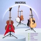 Guitar Stand Double Neck Floor Guitar Stand Universal for Acoustic Electric Guitars Bass Banjos Folding Tripod Guitar Stands Holds 2 Guitars Together Holds and Displays 2 Guitars: Suitable for various types of guitars such as acoustic, electric guitars, bass, 6 and 12 string guitars, banjo, mandolin. In addition, especially for accommodate non-symmetrical body guitars. Every great guitar deserves the best guitar stand! Rotate to Adjust Height: The biggest difference from the conventional guitar stands is that this acoustic guitar stand can be rotated to adjust the height. Very easy to use and accommodate 2 different models of guitars. Reinforced Construction: We add three thick metal support bars to the base to provide additional support for the entire guitar stand. Tripod legs extend farther outwards for a steadier footing. Anti-slip rubber feet to hold a firm grip on the floor. Once the guitar stand is installed and put the guitar in place, it will be very stable and has no chance of falling over. Uneven and Thick Padded Arms: Different from the flat and straight shape of guitar arms, floor guitar stand has uneven supporting arms, which could firmly fix both thin and thick instruments without the risk of sliding and scratching. All the points of guitar and the stand in contact are wrapped with thick sponge. The delicate and thoughtful design is all about protecting each musical instrument. Space Saver: guitar stand can be folded flat for easy transportation and storage. The height of the base is adjustable, also very suitable for music lovers with limited room space. Fits for all-purpose performance and practice at any time! Such as the concert, tour, music festival, party, ceremony, talent show.