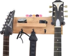 GUITAR HANGER SHELF. Our unique 360° hook design means you can proudly hang TWO stringed instruments from our wall mounted guitar holder. The rubber coating means no scratches to your instruments and a secure hold in the frame. MULTI FUNCTIONAL GUITAR HANGING RACK. Store guitar accessories alongside your instruments with our all-in-one wooden guitar wall shelf. Stop running around looking for your guitar tuner or picks – our wall mounted hanger keeps them all in one place! WOOD GUITAR WALL MOUNT. Designed in natural hardwood perfect for any guitar aficionado! We know how much your instruments mean to you – don’t let a poor-quality guitar wall holder ruin the aesthetic of your home studio, acoustic guitar accessories. EASY TO INSTALL & USE. We provide all hardware needed for a simple installation meaning balancing guitars against your amp is a thing of the past! Our multi functional hanging guitar stand allows you to save space when storing your guitars. GUITAR LAB GUARANTEE. We pride ourselves on excellent customer service so if you have any issue with your product, contact us and we'll get back to you within 48 hours. Guitar stand wall, electric guitar wall mount, dual guitar stand. Product Description