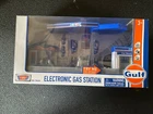 For collectors and enthusiasts of diecast models, this "Gulf" Electronic Gas Station with Light & Sound & Tanker Truck 1:64 By Motor max is a must-have addition to your collection. The set includes a detailed diorama of a gas station with a truck, both made of high-quality plastic and diecast truck material respectively. Featuring a unopened box and with light and sound functions, this model is perfect for display or play. The gas station and truck are both beautifully designed with the Gulf Oil franchise theme, making it a great gift for anyone who loves gas and oil related models. Manufactured in 2020, this set is a great addition to any collection. * Brand new 1/64 scale model of "Gulf" Electronic Gas Station Diorama with Light and Sound and Tanker Truck by Motormax. * Brand new box. * Decals included. * Real rubber tires. * Detailed exteriors. * Officially licensed product. * Button activated light and sound. * Service Station is made of plastic. * Batteries included ("AAA" (R03) 1.5V x 3). * Approximate length of Tanker Truck is L-5 inches long. * Tanker Truck is made of diecast with some plastic parts. * Approximate dimensions of Electronic Gas Station is L-11, W-6, H-5 inches.