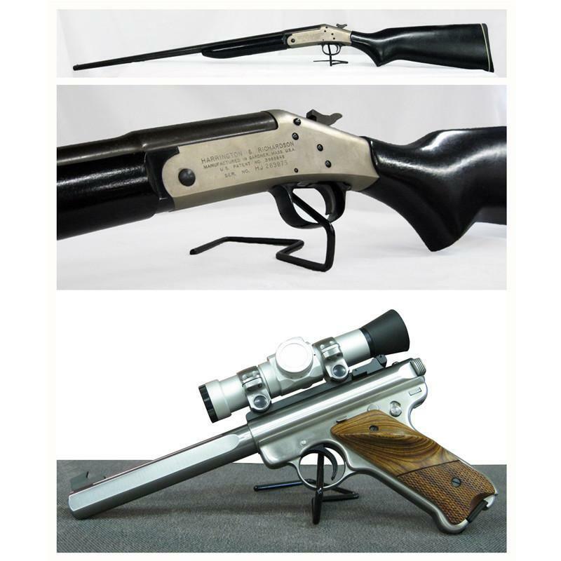 Think your gun safe is full? Think again! Individual display stands for handguns. For use on any flat surface - in gun safes, on shelves or tables, etc. Vinyl coated wire Fits guns as small as a 22 caliber Chamfered (rounded) end Bend angled prong to accommodate different sizes of guns Kikstands give a great presentation of your inventory, allow for more guns to be displayed, and are easily accessed by sales associates. When set at an angle, instead of flat on the shelf, more guns are able to fit in the same area. Kikstands will insure that every time the gun is taken out of the cabinet it is returned to the same position.