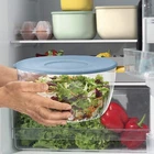 Spin&Store salad spinner washes and dries salad greens and all large-leaf vegetables quickly and effectively. Its compact container can also become an elegant salad bowl for use on the table. The internal basket has feet to keep it raised above the base of the container: thanks to this detail, the spinner can also be used as a container for defrosting foods, which are not immersed in water thanks to the feet which raise them off the bottom. The spinner also has a stay-fresh lid which can be fitted to the container for storing vegetables in the fridge. Dimension: 26 x h19 cm - Capacity: 4000 cc Collection: Kitchen Active Design - Designer: Sinem Sissi Ergunay Bowl made entirely by recycling 6 post-consumer disposable water bottles The intentionally uneven circular decorations confer a strikingly resonant hand-made look Official Guzzini Product - Made in Italy since 1912