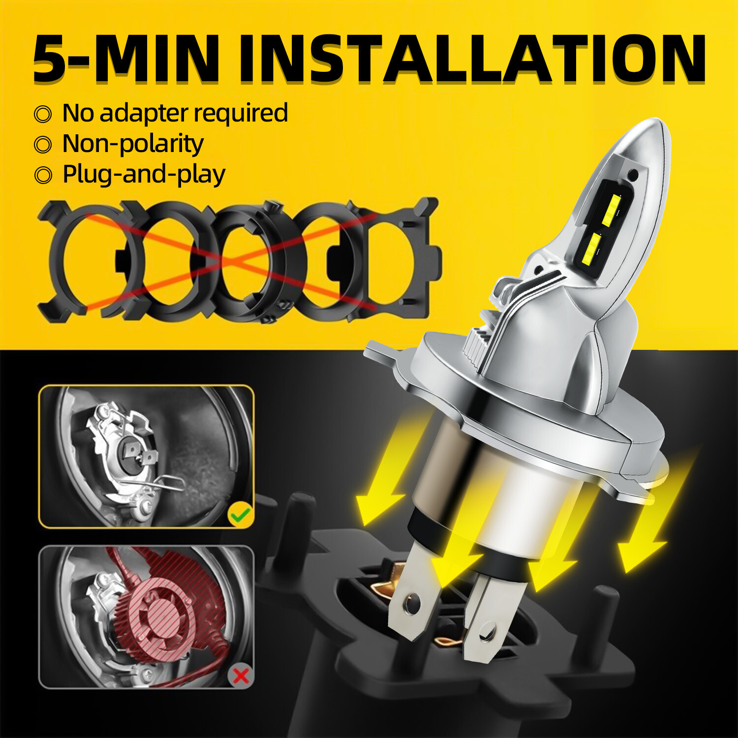 Package Included: 2 x 9003/H4/HB2 LED Headlights Bulbs Specifications Condition: 100% Brand New High Quality with Reasonable Price Bulb Size:HB2 (9003) H4 Usage: Headlight/Fog Light Power: 90W/per pair Color Temperature: 6000K White Luminous Flux: 40000LM/set(20000LM/bulb) Light source: CSP (3055) High Powered Light Source Certified by: CE & ROHs Voltage: DC 9V-32V(Fit 12V/24V vehicle) Warranty: 5 YEARS Lifetime:Up to 50,000 Hours Placement on Vehicle: Front, Left, Right Heat Dissipation Theory: Heat Pipe Technology + A380 Aluminum Heatsink Qiaobali Best choice of motor parts CANBUS H4/9003 LED Headlight Bulbs Conversion Kit High Low Dual Beam 6000K White Package Included: 2 x 9003/H4/ HB2 LED Headlights Bulbs Specifications Condition: 100% Brand New High Quality with Reasonable Price Bulb Size: HB2 (9003) H4 Usage: Headlight/Fog Light Power: 90W/per pair Color Temperature: 6000K White Luminous Flux: 40000LM/set(20000LM/bulb) Light source: CSP (3055) High Powered Light Source Certified by: CE & ROHs Voltage: DC 9V-32V(Fit 12V/24V vehicle) Warranty: 5 YEARS Lifetime:Up to 50,000 Hours Placement on Vehicle: Front, Left, Right Heat Dissipation Theory: Heat Pipe Technology + A380 Aluminum Heatsink Suitable For Motorcycle, Motorbike, Bike, car, van, truck, pickup, SUV, bus, off-road, ATV, Wagon, UTB, forklift, tractor etc. Features: Optimized Beam Pattern This bulb has 1:1 halogen filament design, apply for the same length and position as the halogen bulb. It focuses light to match the standard beam pattern and does not blind oncoming traffic, no dark spots, or foggy light. Better Heat Dissipation, Last Longer New Cooling system with With a copper base board, cold pressed aluminum heat sink and EMC anti-electromagnetic interference. Better solve the dimming or over heated of led bulbs.the all-in-one compact aluminum design brings better heat dissipation than common plastic design, and intelligent IC make sure the LED conversion kits last longer. 400% BRIGHTER THAN HALOGEN Utilizing upgrade Flip chips with 6000k cool white, the 9003 HB2 H4 LED headlight bulbs providing further and wider visibility for you to see the deer, wild animals, falling rocks or other obstacles in advance to ensure safer driving at night. Shorter Size|Quick Installation Without Struggling Built with a smaller/ shorter size than the common LEDs in the market without building an external driver, directly plug into the factory housing. The same design with the OEM halogen bulbs for easy installation. IP67 waterproof: The whole aviation aluminum lamp body, built-in single copper tube,using integrated radiator and aluminium body self-cooling, waterproof and heat-proof. Even in extreme cases, it can work normally. Automatic short circuit protection. High-purity brightness The light-effect boundary is clear, without stray or dazzling light, making a great contribution to the safety of the driver. With High-purity brightness, strong penetrability and superior stability,Energy saving, environmental protection, through strict test, Use safer driving in the car,highly recommended. No Decoding Error As the power of a single H4 led bulb is 90W, the same high as a stock halogen bulb, these bulbs can directly alleviate decoding problems, no warning on the car computer/dashboard. The overload capacity of 9003/HB2/ H4 bulbs, a threefold increase over standard leds, perfectly solves the problem that many LEDs burn out due to excessive starting current. Install Caution: As a safety precaution, make sure that the car has had time to cool down properly before starting the installation process. Put the vehicle into park or make sure it is securely in gear. Make sure to have the ignition turned off and the keys removed. Be careful to avoid burns, especially when turning on or off the vehicles lighting. Be careful to avoid crushing or cutting the bulbs. Also make sure to not touch the bulbs with your fingers, as this will cause blotting. Fully examine the connection of the contact points, ports and the wires as faulty connections can cause lighting problems. Make certain that the end of the bulb does not come in contact with the interior light shield of the headlight when adjusting the bulb. Please Note: Please check your car manual or original bulb to confirm the bulb size, length is correct or not before purchasing to save your time. Note: Please check whether it is fit your vehicle before purchase. The compatibility table is only for reference, please make sure to verify the bulb type of your vehicle before purchasing. We are happy to help if you need any further information. Please make sure the headlight housing has enough space for installation before purchasing. Professional installation is highly recommended. If you have any questions, please feel free to contact us. Item Specifics Brand Modigt Lighting Technology LED Suitable For Headlight, Low Beam, Daytime Running Light, Fog Light Bulb Fitment Code H4 (9003) Number of Bulbs 2 Light Color Clear Type Light Bulb Features CANbus Compatible Waterproof IP67 Lighting Type Specialty Headlight and Fog Light Color Temperature 6000K Wattage 90W/per pair Voltage DC 9V - 32V Lumens 40000LM/set(20000LM/bulb) Material Aluminum material originally designed for aircraft Bulb Life Hours Up to50,000 Hours Placement on Vehicle Front, Left, Right Fitment Type Direct Replacement Manufacturer Warranty 5 Years Beam Angle 360 Degrees Interchange Part Number 9003 HB2 H4 Operating Temperature -40°C ~ 90°C More Wattage LED Kit We Have 50W 90W 200W Features2 High brightness, long life, low fuel consumption Features3 Good focus intensity , long distance illuminating Model LED Bulbs / LED Lights Sealed Housing Dustproof & Waterproof Aluminum Heatsink Bundle Description LED headlight replacement Brightness 400% Brightness than halogen Chips Package includes 2xH4 LED Headlight Manufacturer Part Number Daytime running driving DRL plasma lighting Othere Part Number Upgrade for Sylvania incandescent bulb Function Re