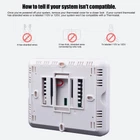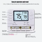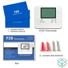 Before buying, please confirm whether the product is compatible with your system, and check the size of the product to see if it can cover the traces left on the wall of the old thermostat. H725 2 heat/1 cool programmable heat pump thermostat, separate programs for the weekdays and weekends with 4 program periods per day including wake, leave, return and sleep. For use with Heat Pump Systems or conventional (central gas, oil, electric furnaces) single stage systems, up to 2 heat 1 cool. Not compatible with 110-240V electric heat systems (like electric baseboard heat, line voltage, convectors, radiant-ceiling heat).【2. does not work with conventional multistage systems, mini split systems and 12v rv thermostats.】 Accurate temperature control of +/-1-Degree F for consistent comfort, Room temperature display range: 41°F to 95°F, Temperature control range: 44°F to 90°F. Support a heat or cool swing set up (0.2°F to 2°F), which will either prolong or shorten the temperature open time. make comfortable temperatures to reduce energy usage, savings on annual heating and cooling costs. Room temperature calibration adjustment, and 5 minute compressor delay protection (Selectable on or off), with air filter change reminder and low battery indicator available. 4.5 sq. inch display with white backlight, easy-to see and read. large, clear backlit digital display, very suitable for middle-aged and elderly people. Dual-powered (battery and/or hardwire 24Vac power), easy access battery compartment. If you have any problem, please feel free to contact us, we will repley you in 24 hours. the products come with 30 days free return, 2-year Worry-Free Warranty.